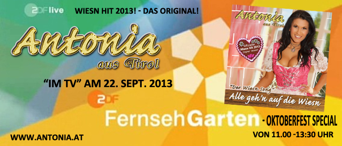 Weiterlesen: Antonia aus Tirol im ZDF Fernsehgarten mit Ihrem Wiesn Hit „Alle gehen auf die Wiesn“