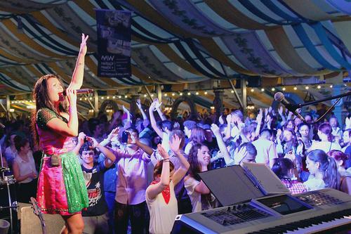 Für großes Gedränge vor der Bühne sorgte die Sängerin Antonia aus Tirol, die zusammen mit zwei Kollegen die Radio-Charivari-Kultnacht während der Lohrer Spessart-Festwoche bestritt. Die Rechnung ging auf: So viele Besucher wie seit Jahren nicht mehr kamen am ersten Sonntagabend der Festwoche ins Zelt. Fotos (3): Thomas Josef Möhler